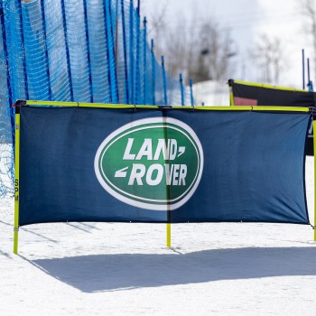 Reklamenett på 15 meter a 2,5 meter banner som kan digitaltrykkes inkludert 7 stk staur.